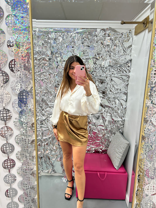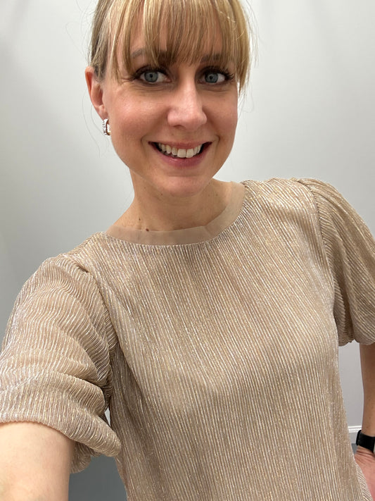 Metallic Plisse Blouse ChampagneRegular price $42.00 USDRegular priceUnit price per-