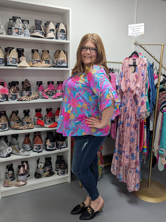 Bell Slv Top Ocean Floral (S-3X)