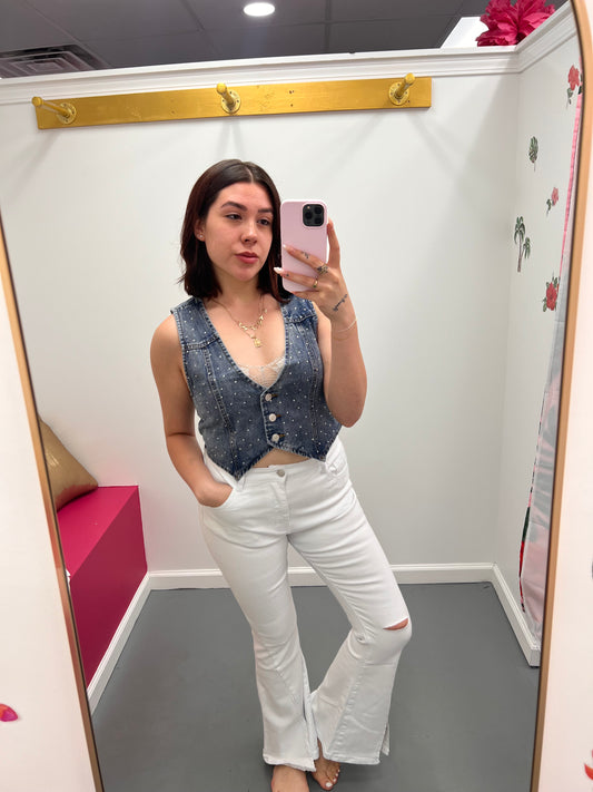 Sparkle Cropped Denim Vest