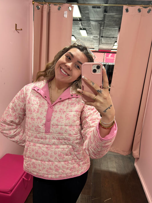 Quilted Floral Jacket Front Pocket
