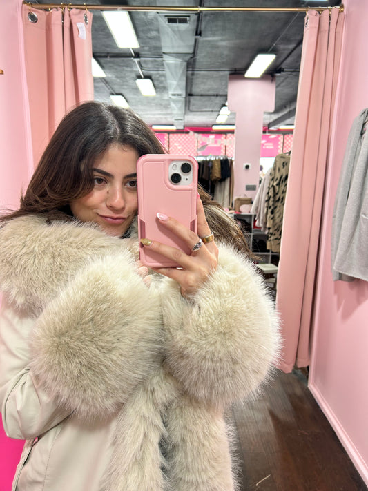 Iconic Fur Trim Maxi Coat Cream