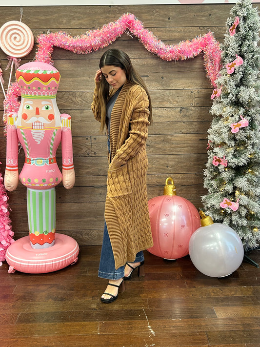 Long Cable Cardigan Brown