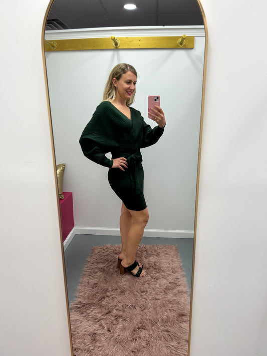Knit Wrap Dress Green