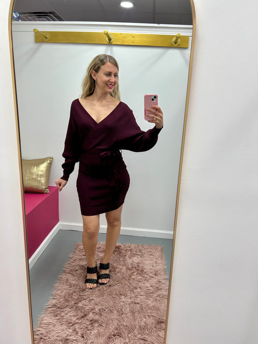 SaleKnit Wrap Dress Wine