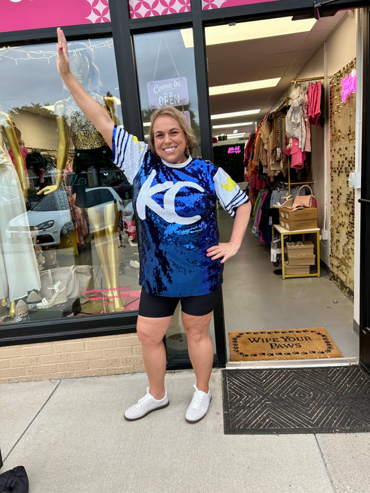 MLB KC Sequin Shirt Dress Royal Blue