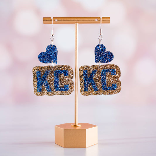 Blue KC Heart Drop Dangles