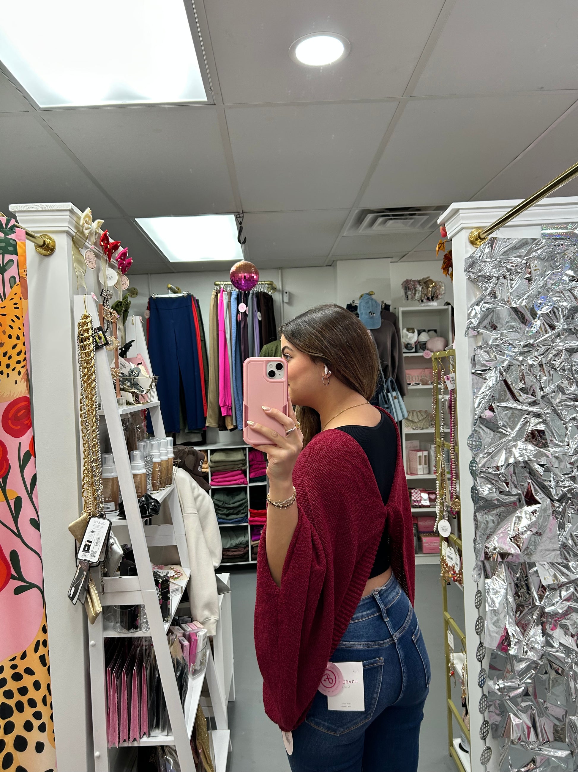 Meet the ultimate fall layering piece — our Crossover Knit Cardigan in Wine. This luxuriously soft knit is designed to move with you and give you options: wear it crossover-style in front for a wrapped, polished look, or flip it backward for a relaxed open-front silhouette. Two looks in one cozy, flattering design!