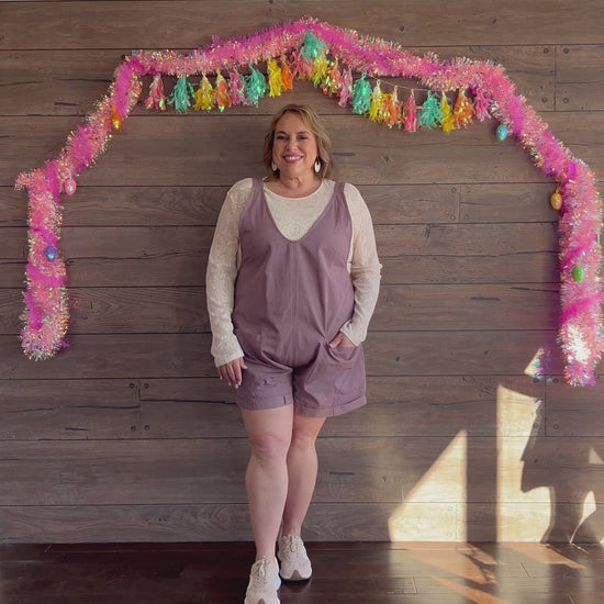 The mauve tone adds a feminine twist to the everyday romper, while adjustable straps let you customize the fit just right. And of course—deep pockets for that functional, lived-in vibe we all love. It’s the perfect layering piece over a fitted tee, tank, or long sleeve for an effortlessly styled outfit.