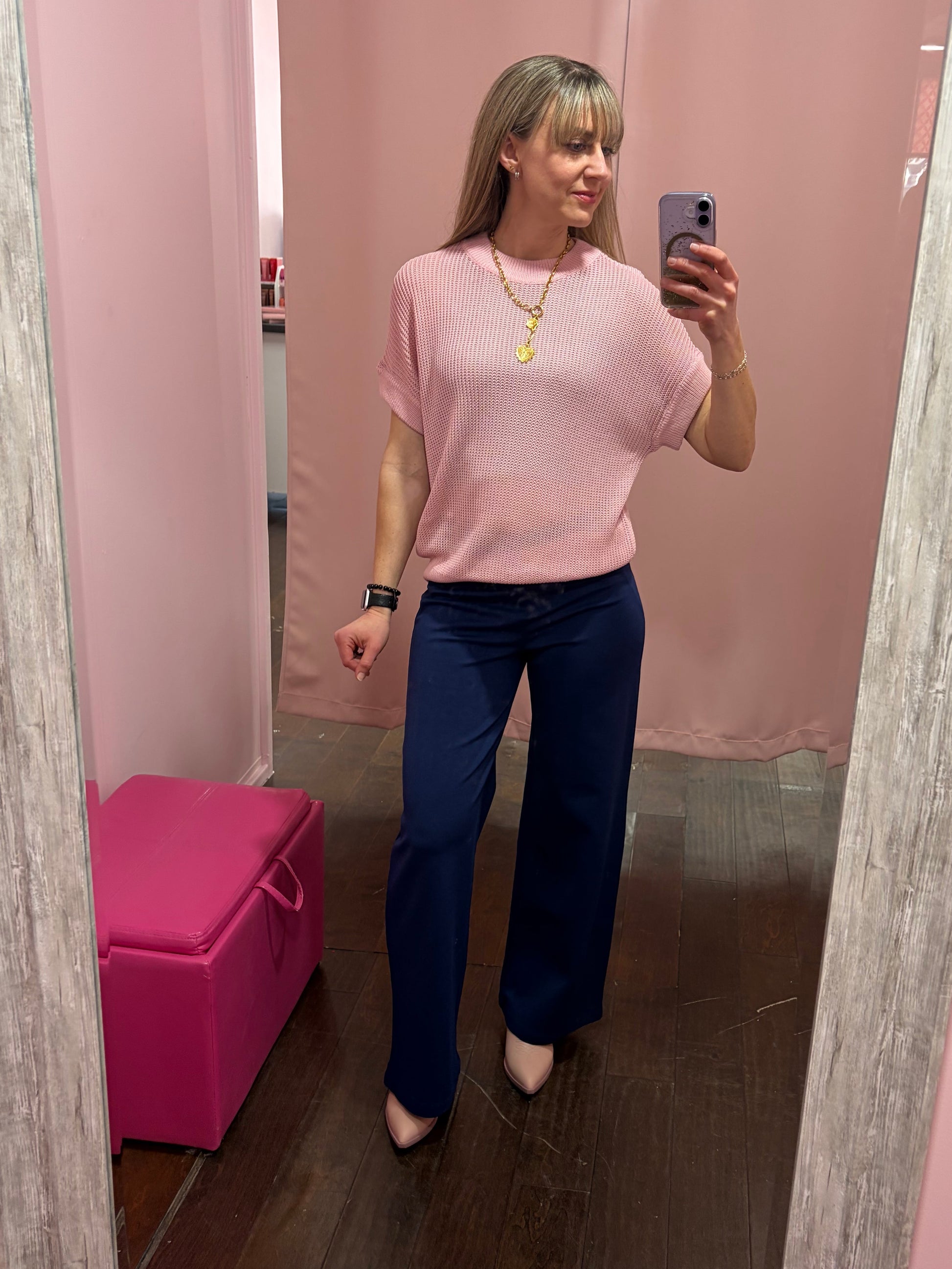 Meet the top your closet has been waiting for. The Essentials Knit Top in Blush is that effortless, feel-good piece you’ll reach for on repeat — soft, feminine, and perfectly polished without trying too hard. The blush tone adds a warm, romantic touch that instantly brightens your look while still staying neutral and wearable. It’s simple in the best way, with just enough charm to feel special.