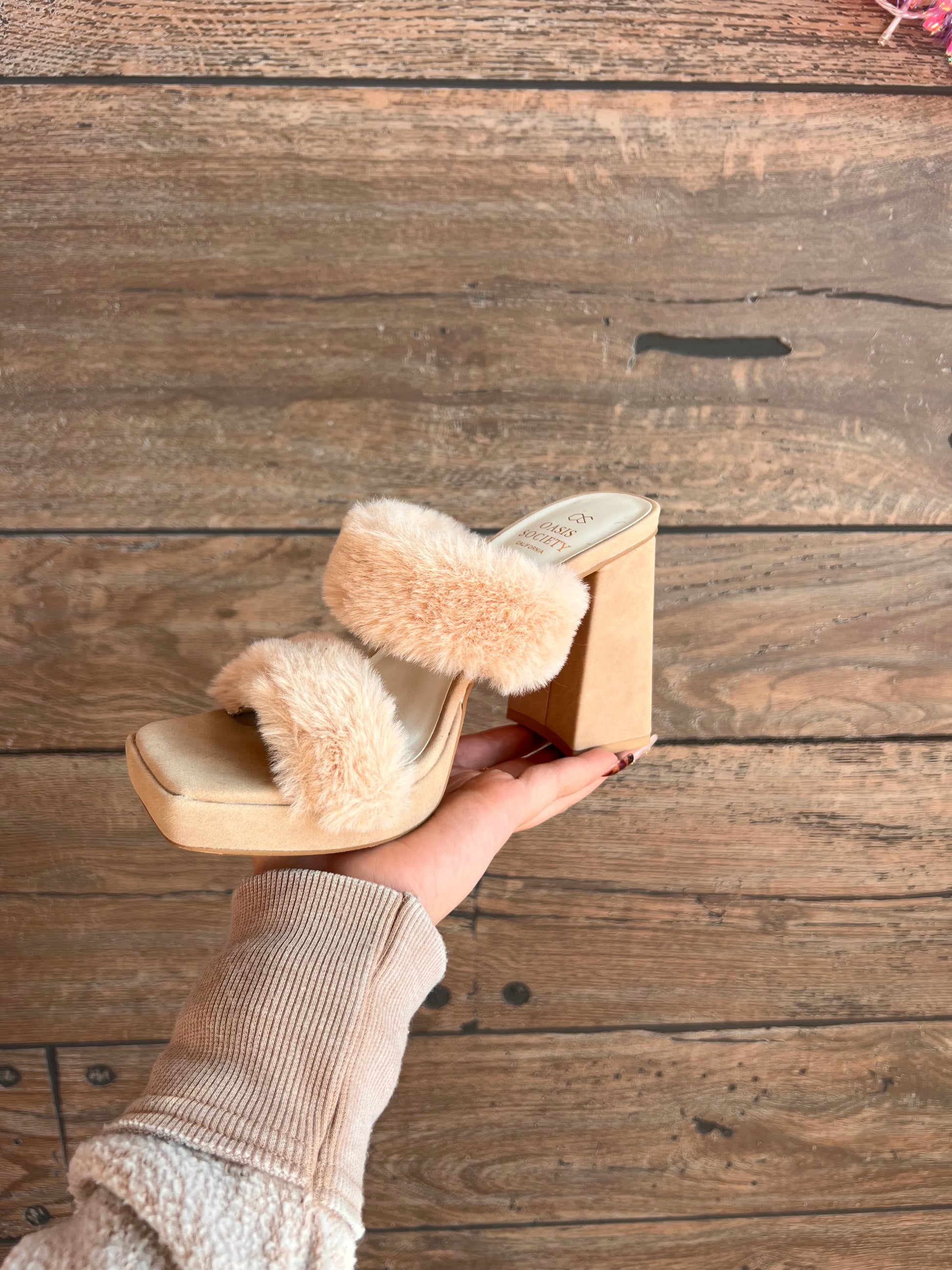 It’s party-ready with a cozy twist. The Fuzzy Platform Party Heel brings bold style and playful texture together in one statement-making shoe. Designed with plush faux-fur banded straps and a chunky platform sole, this heel delivers drama without sacrificing comfort.