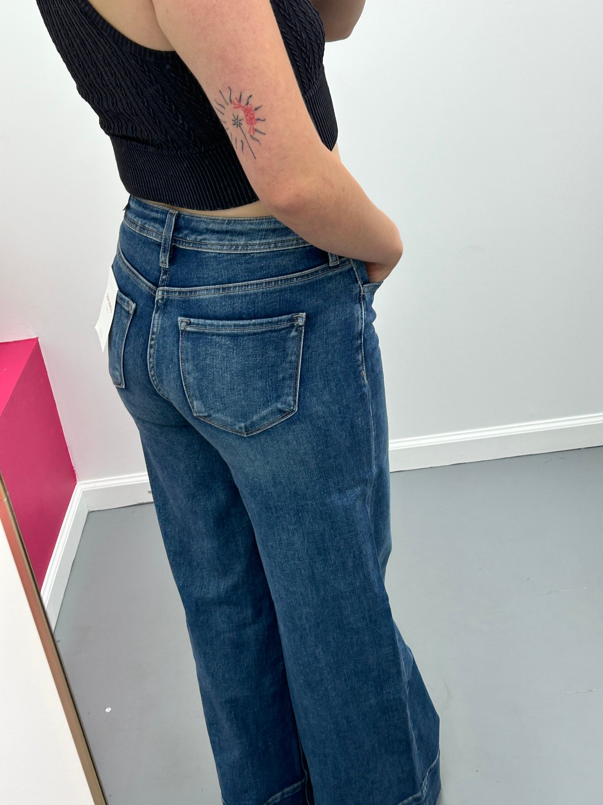 Say hello to your new go-to jean. This full-length, high-rise wide leg is tailored to flatter with a structured A-line silhouette, seam detailing, and a raw hem that adds just the right amount of edge. Made with comfort stretch denim, it moves with you while still holding its shape. Dress them up with a blazer or keep it cool with sneakers — this jean does it all.