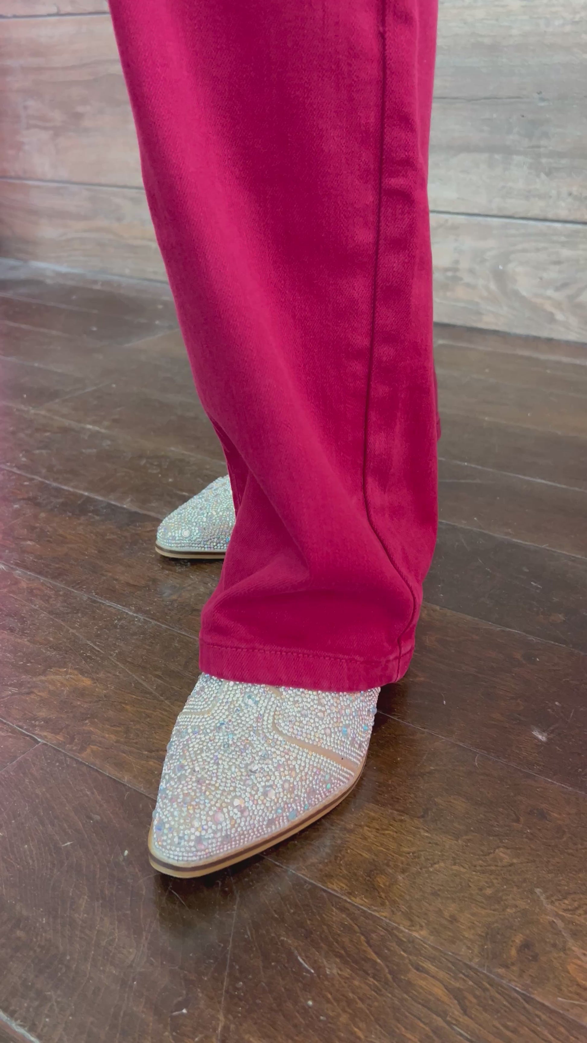 The standout feature? Heart-shaped back pockets that add a subtle, romantic touch without being over-the-top. Crafted in a rich, statement-making hue, these jeans instantly elevate your outfit—whether you’re styling them with a fitted knit, a cozy sweater, or a tucked-in tee.