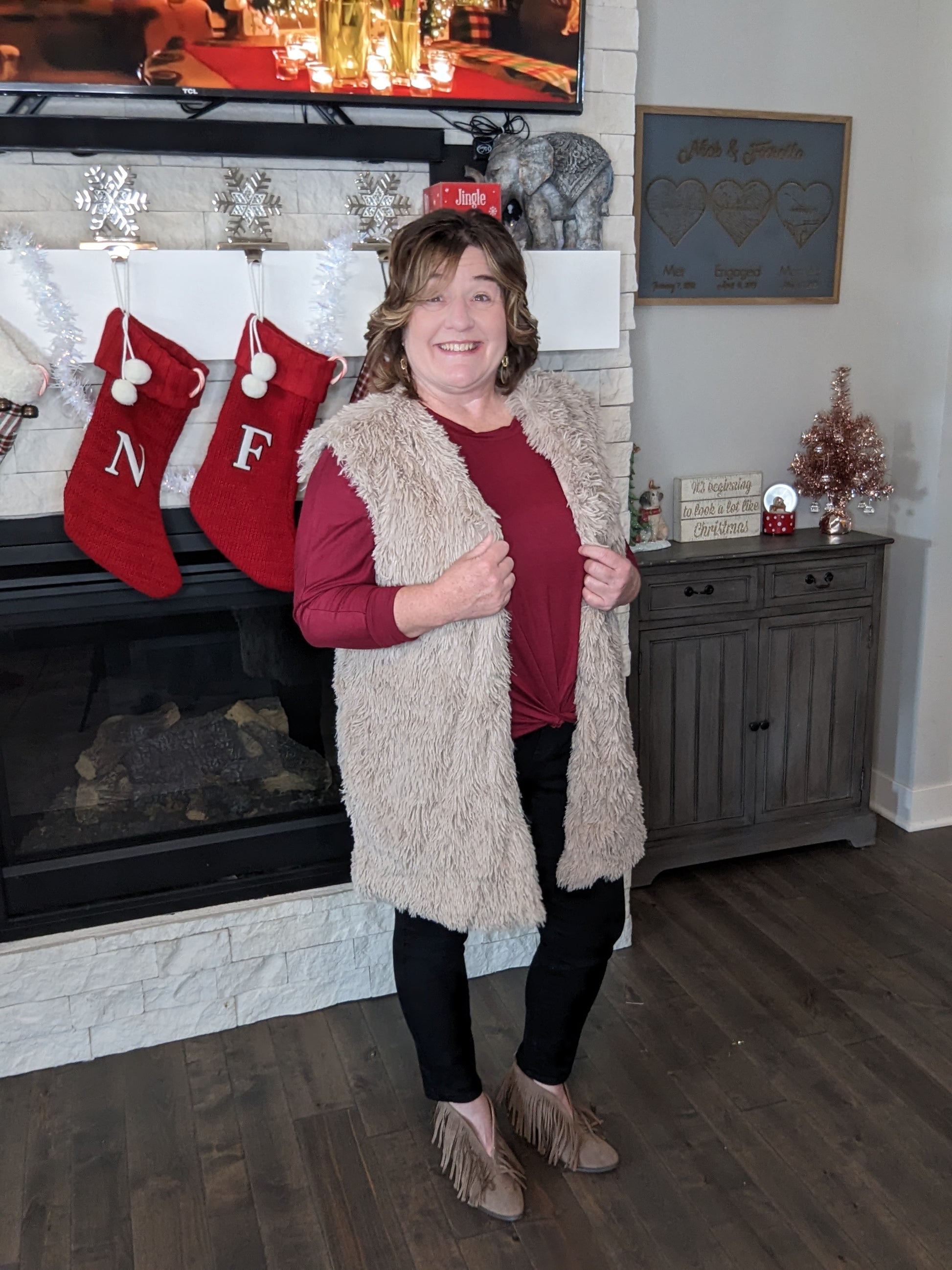 If there’s one thing I will always say yes to… it’s a fuzzy vest. So of course I had to bring this one to the boutique! The longer length makes it extra flattering, the neutral tone mixes effortlessly with all your outfits this season, and the softness is unreal.