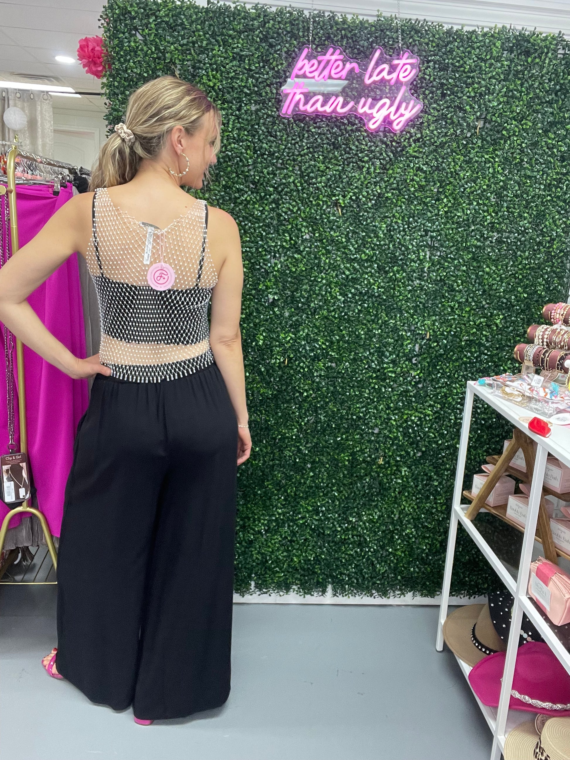 Spice up your wardrobe with our Mesh Bling Top in white! Add some bling to your outfit and wear it over a cami or a cute bralette. A versatile piece for a touch of glam.
