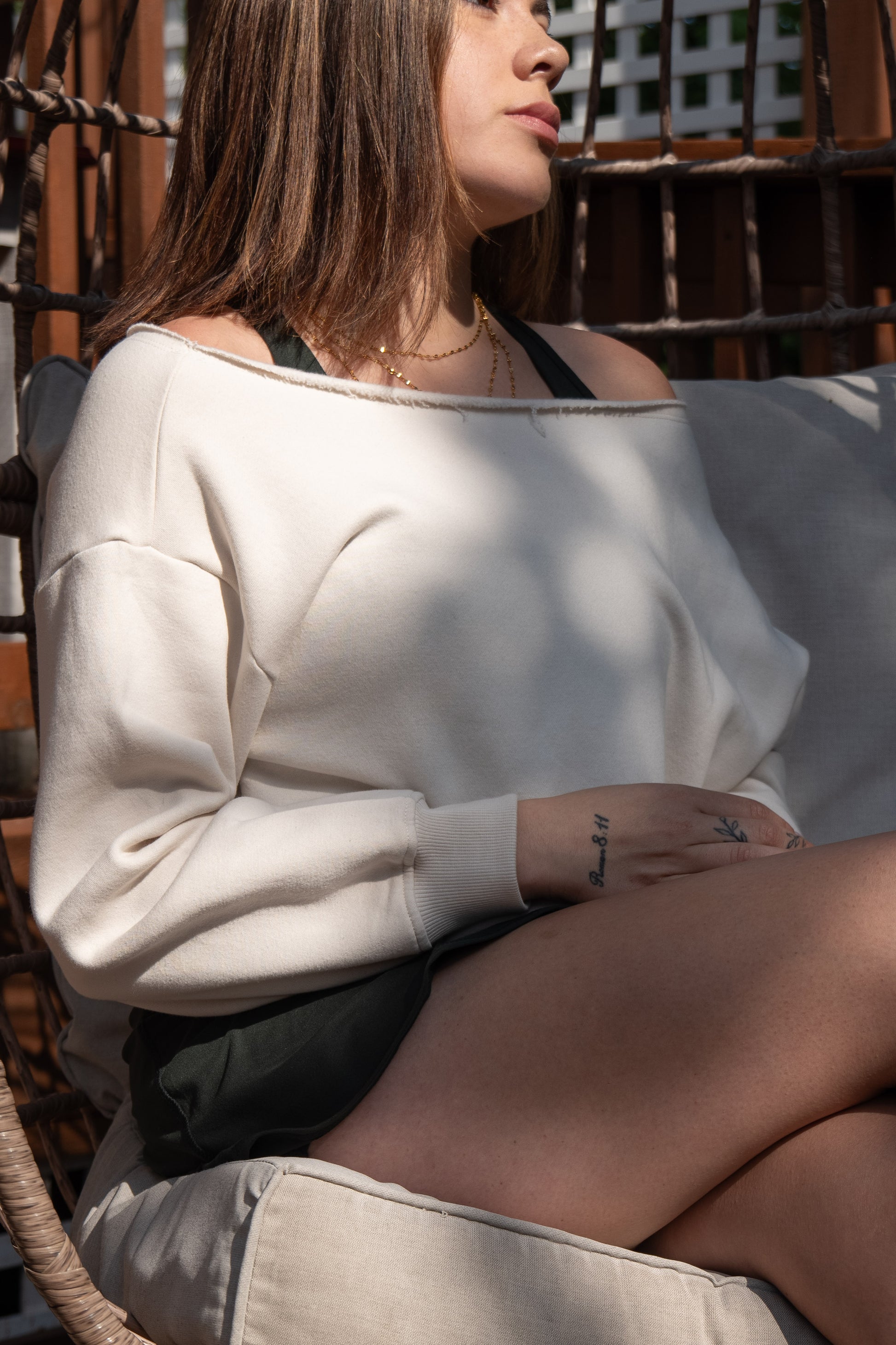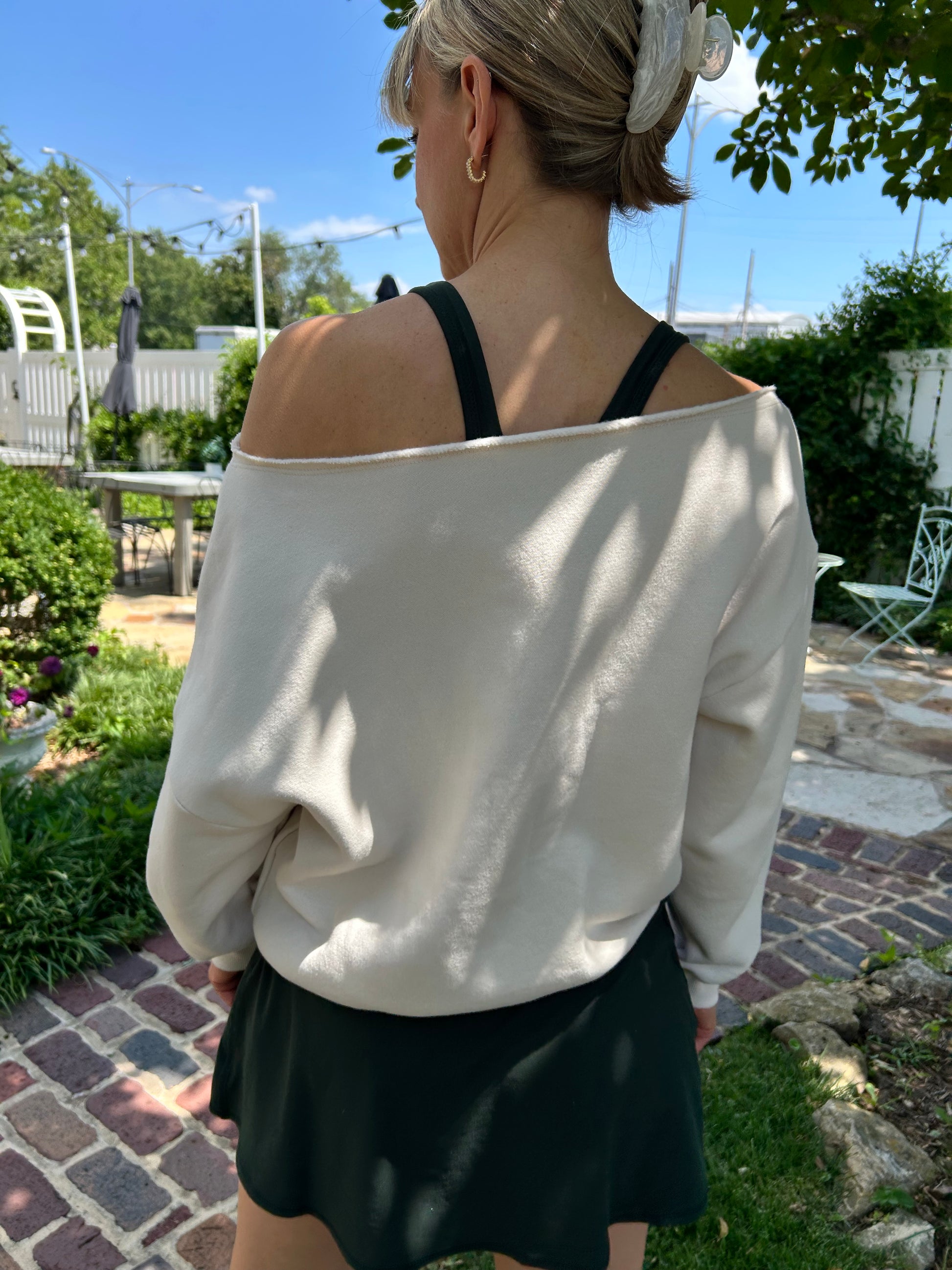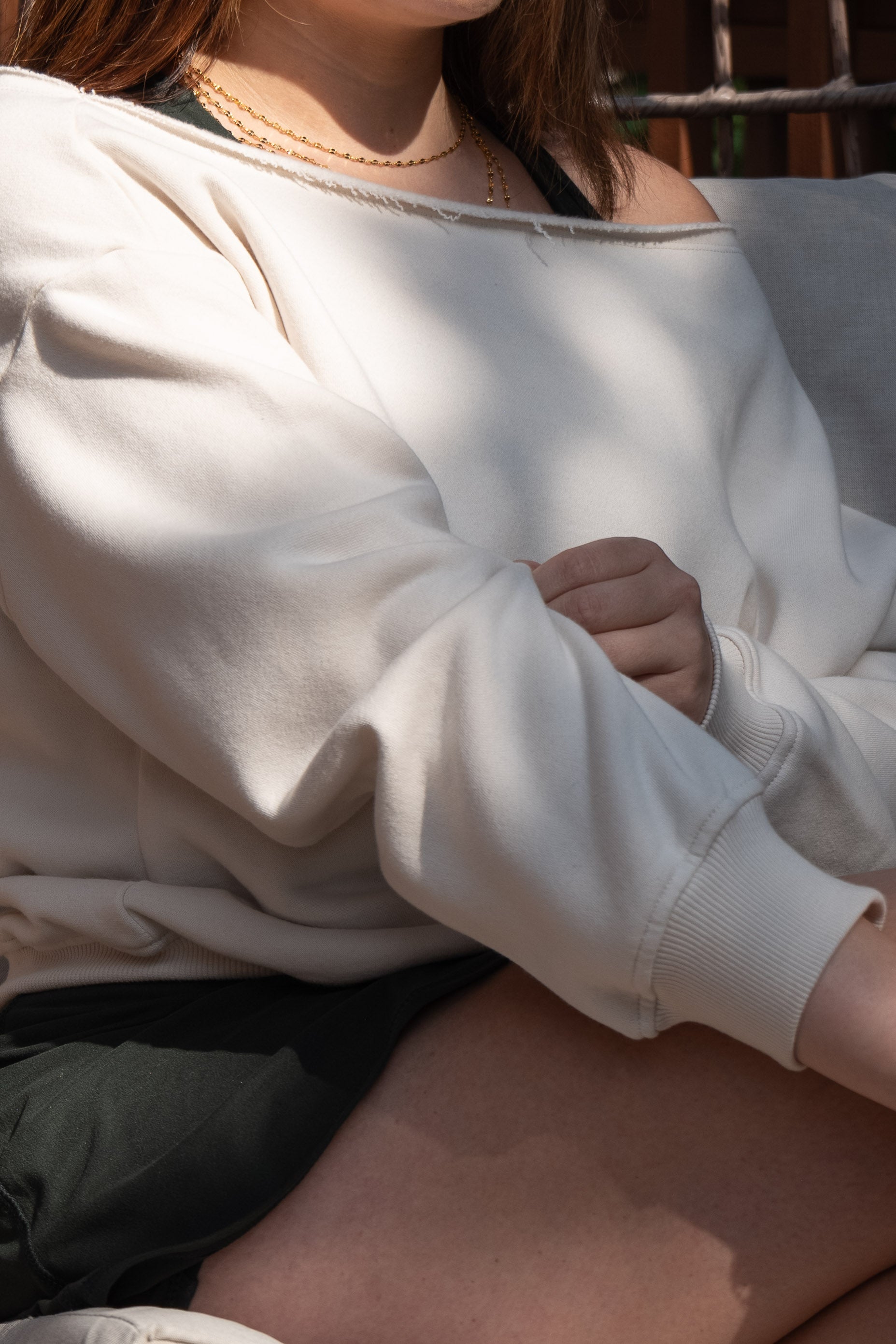 Cozy just got a serious upgrade. Our Off The Shoulder Sweatshirt in Cream is where comfort meets flirty cool-girl energy. Made from ultra-soft fabric in a dreamy neutral hue, this sweatshirt is designed to drape beautifully off one shoulder, giving just the right hint of skin. It’s perfect for days when you want to look cute and feel comfy — whether you're grabbing coffee, lounging at home, or heading out for a casual date night.
