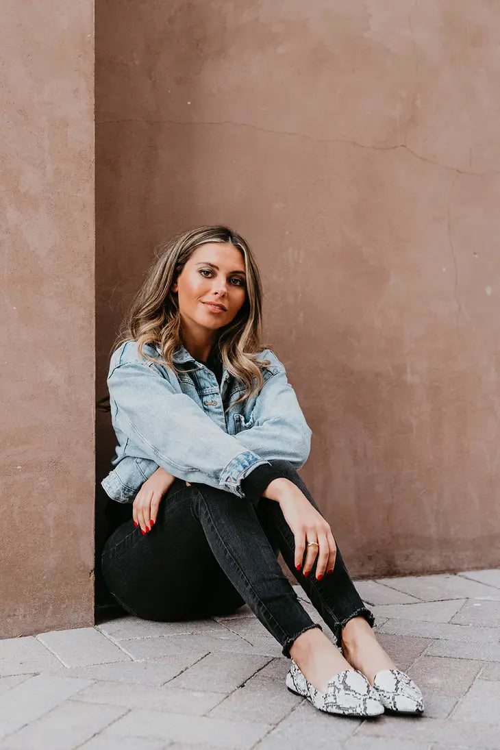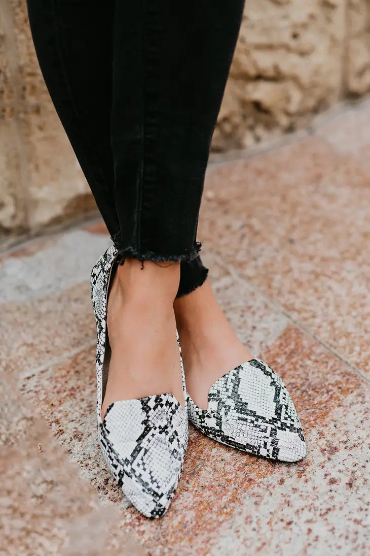 These White Snake print loafer design are crafted in textured faux leather, they’re accented with a bold traditional python pattern to bring out your wild side. Comfortable, playful yet sophisticated. Perfect for work or play!