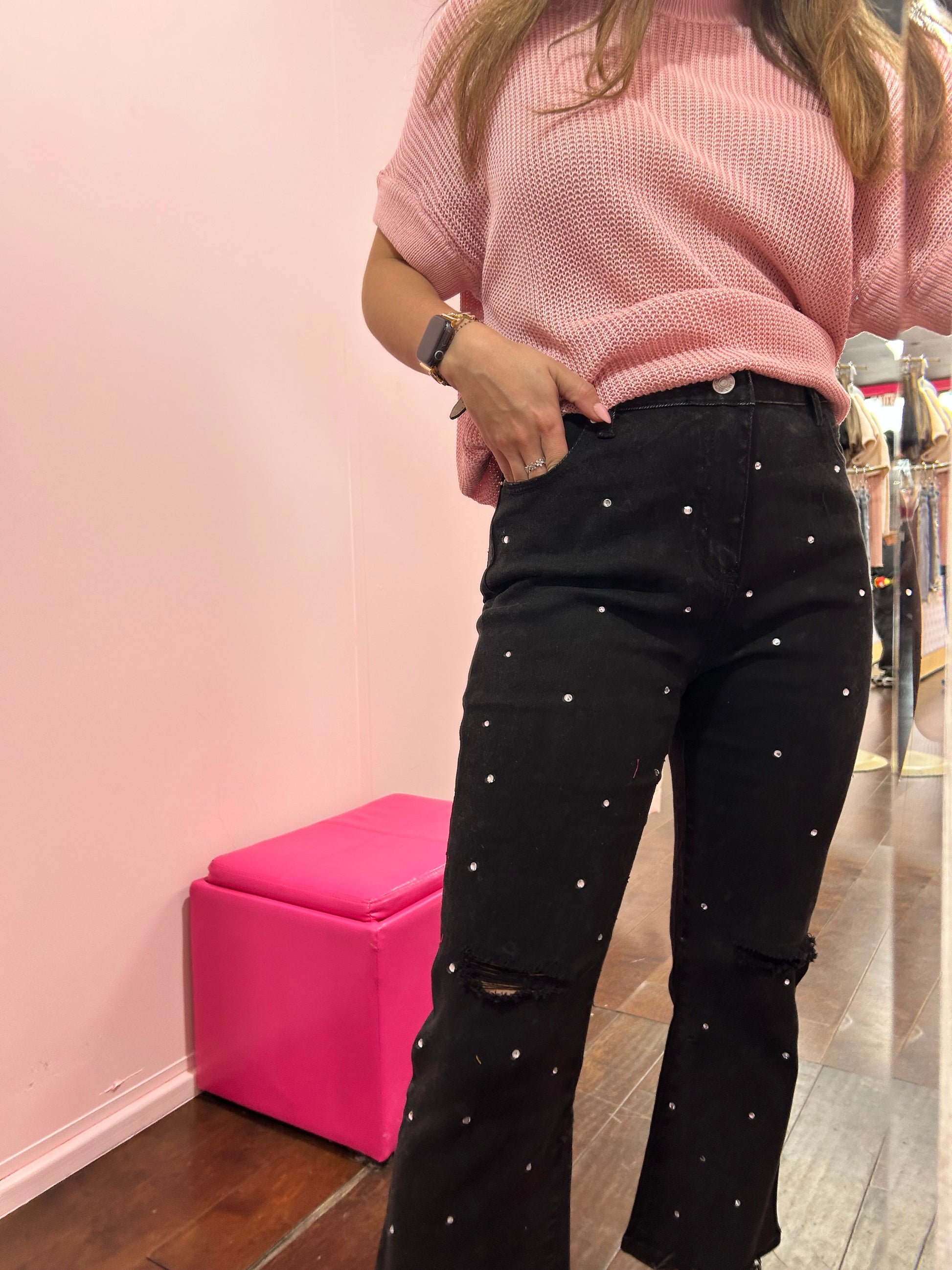 Studded Rhinestone Jeans Black
