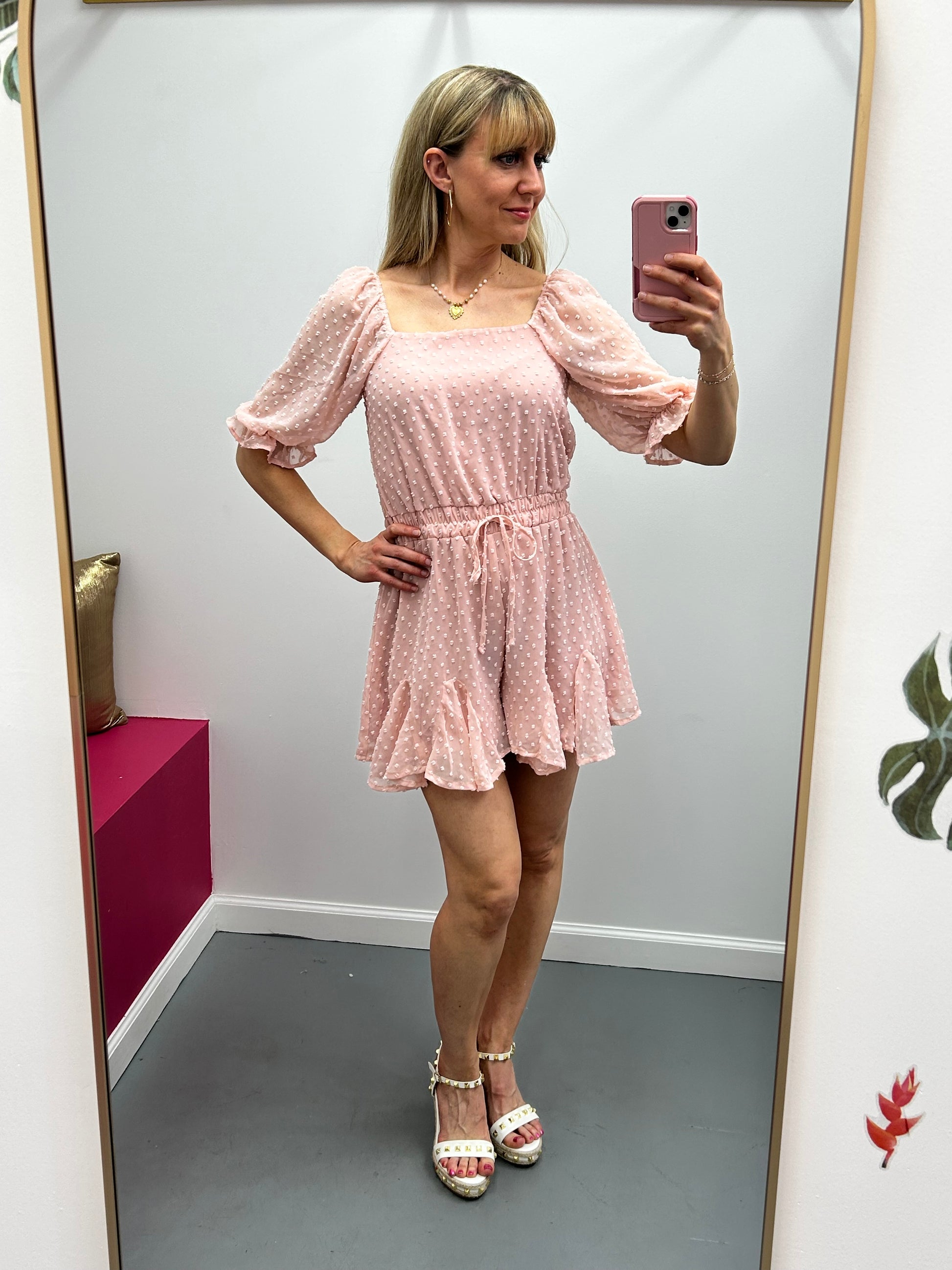 Swiss Dot Romper Blush