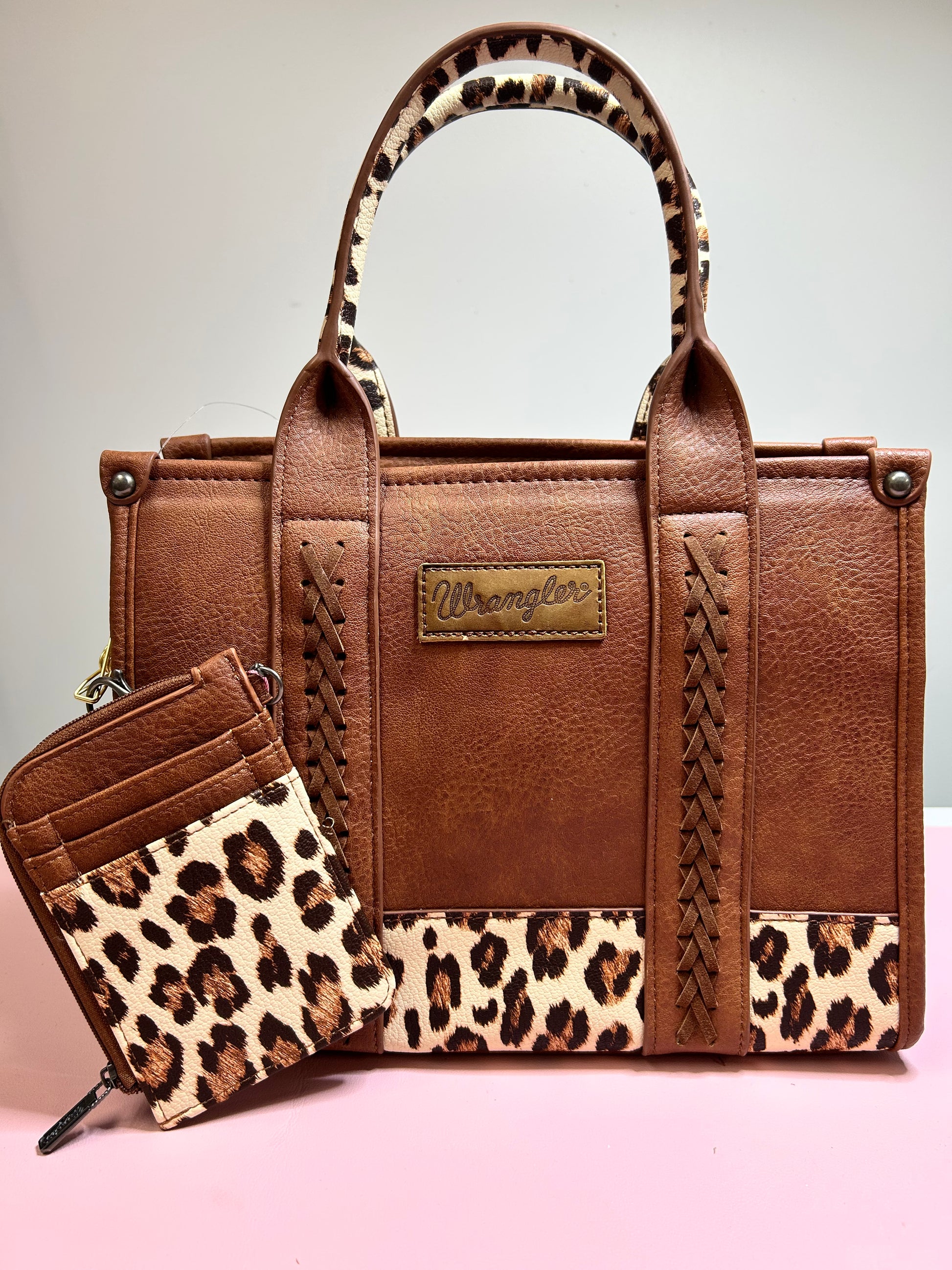 Neutral meets fierce in the Wildway Tote – Spiced Spot. This mid-size tote features soft vegan leather, whipstitch detailing, a structured silhouette, and a bold leopard-print base, handle lining, and adjustable canvas strap. It’s the perfect everyday statement — polished but playful.