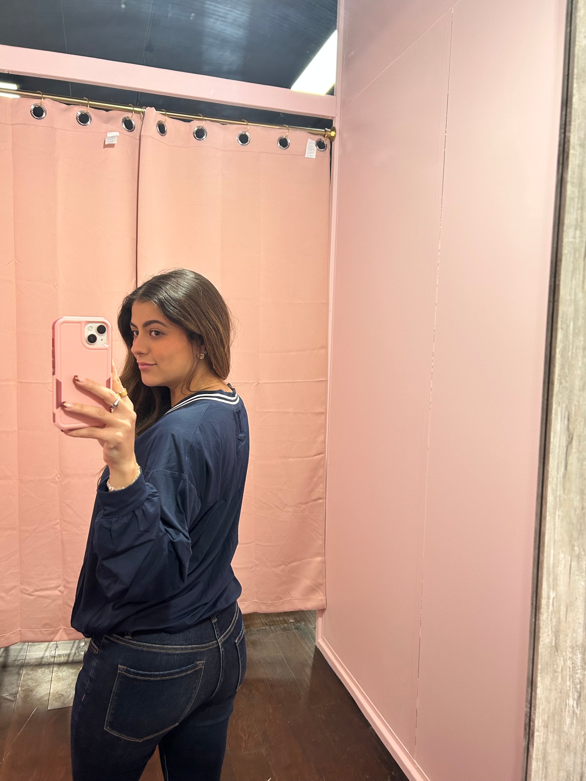 Your new everyday throw-on-and-go favorite. Our Varsity Top blends the comfort of a lightweight sweatshirt with the flattering shape of a polished V-neck. Made from a smooth, quick-dry performance fabric, it feels cool, breathable, and incredibly soft — perfect for running errands, heading to work, or weekend lounging.