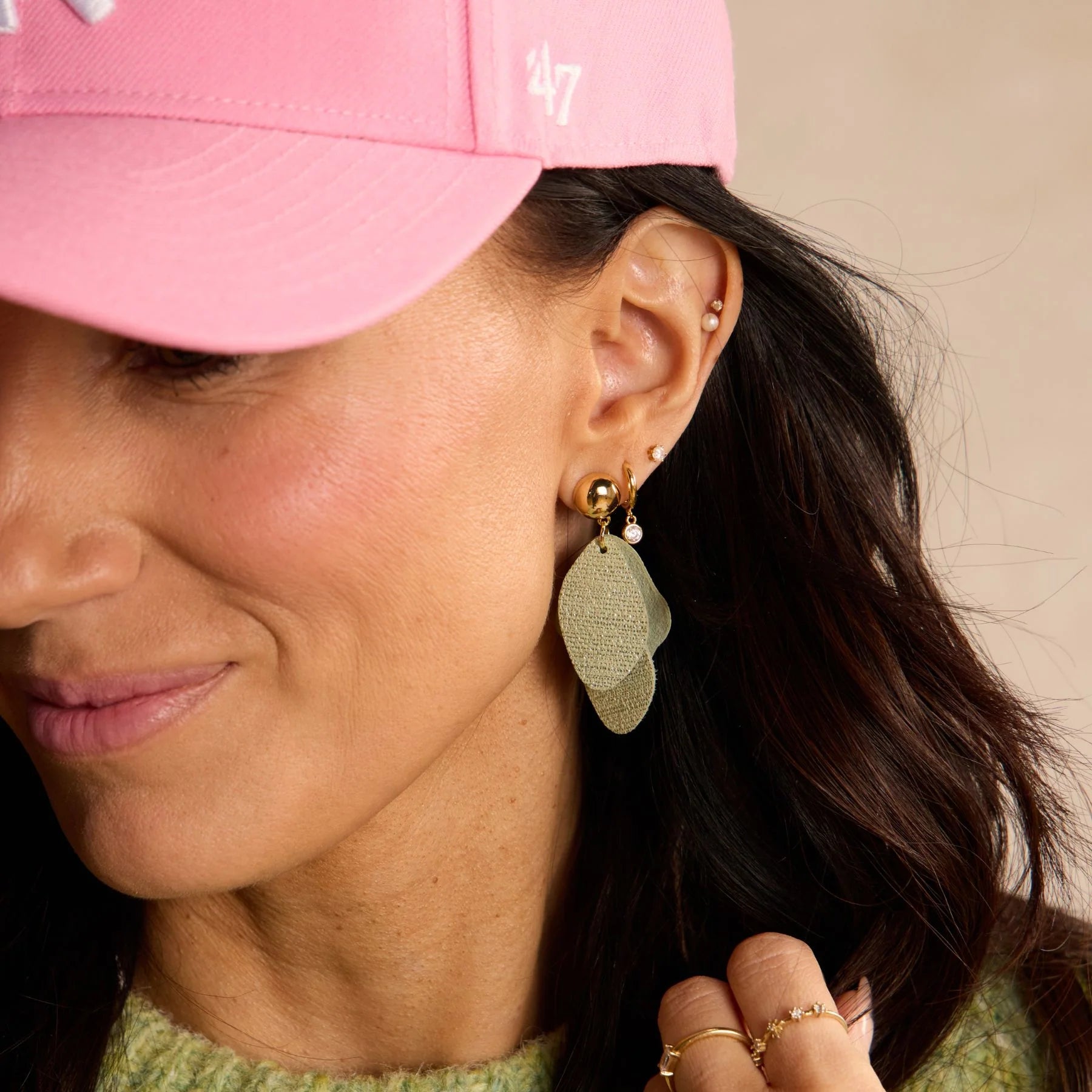 A new take on leather earrings, introducing the Weston. Crafted with Iced Matcha Nappa leather and a gold or silver stud piece. These statement stud earrings are a one-of-a-kind, free-flowing lightweight leather earring with subtle movement.