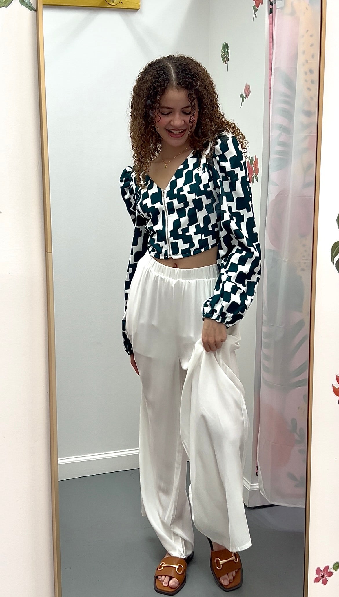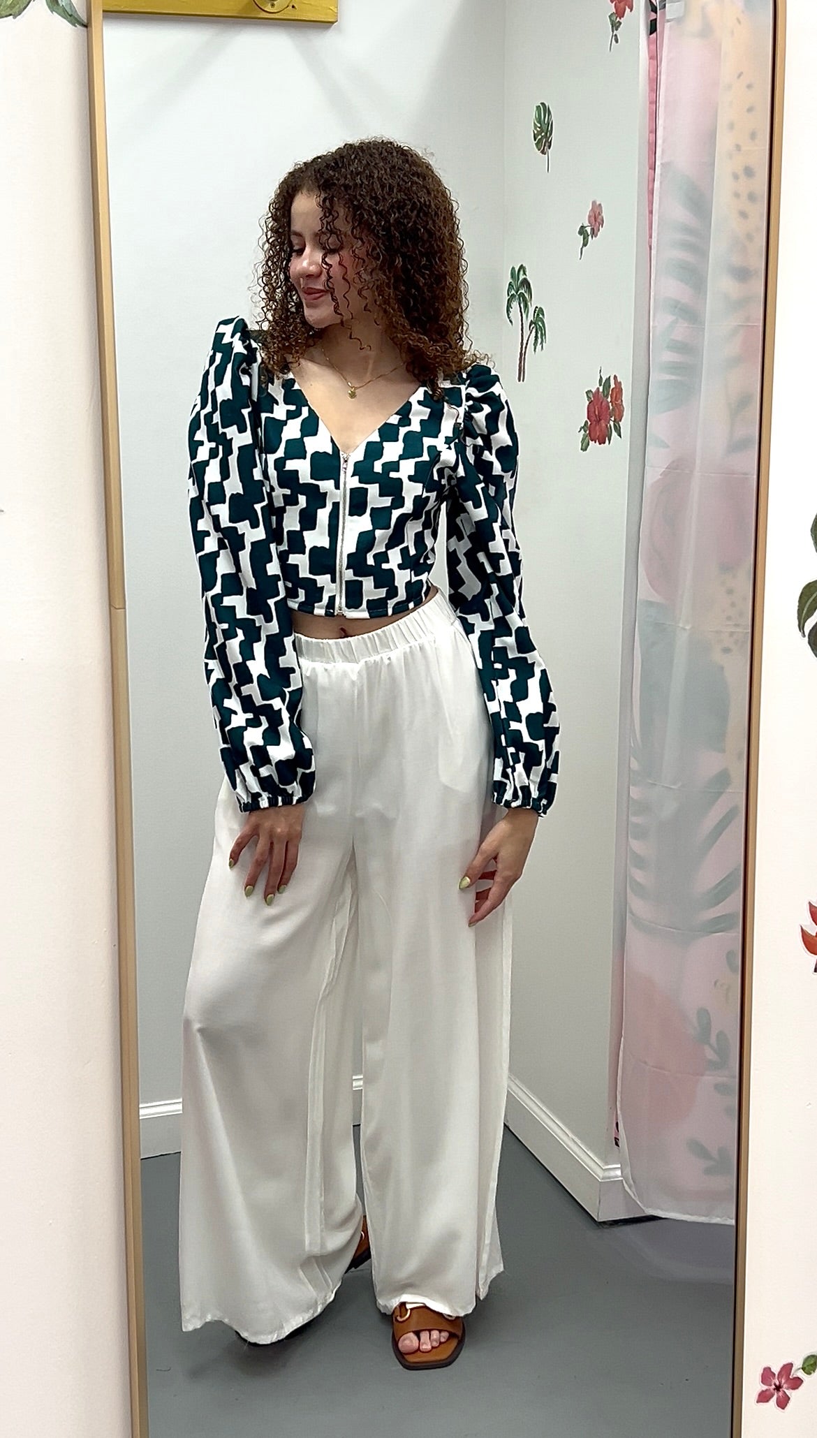 Get ready to zip up in style with our Zip Up Puff Sleeve Crop Blouse! This cheeky piece features full puff sleeves and a stretchy smocked back for ultimate comfort. Plus, the zipper front adds a touch of quirkiness to this lightweight top! Say goodbye to boring and hello to fun! Turn some heads and get ready for endless questions on where you found this top! She's a little bit sweet, a little bit sassy, a little bit hippie, a little bit western, and a whole lot of fun because sometimes we just can't choose one fashion mood. * Crop top length * Full puff sleeves * Smocked stretch back with functional zipper front * Lightweight and buttery feel.